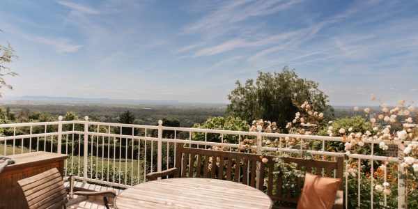 Von außen eher zurückhaltend – von innen ein Erlebnis, das man kaum erwartet. Wer dieses Haus betritt, merkt sofort: Hier öffnet sich ein Raumgefühl, das seinesgleichen sucht. Licht, Weite und ein Panorama, das vom Spessart bis zur Frankfurter Skyline reicht.