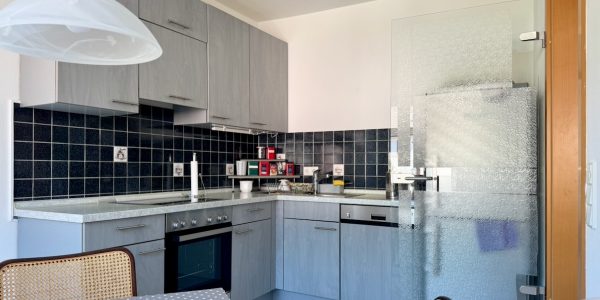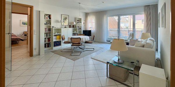 Das Herzstück bildet der großzügige Wohn- und Essbereich mit direktem Zugang zum sonnigen Westbalkon, der einen charmanten Blick in die malerischen Altstadtgassen bietet. Große Fensterflächen sorgen für eine helle und freundliche Atmosphäre.
